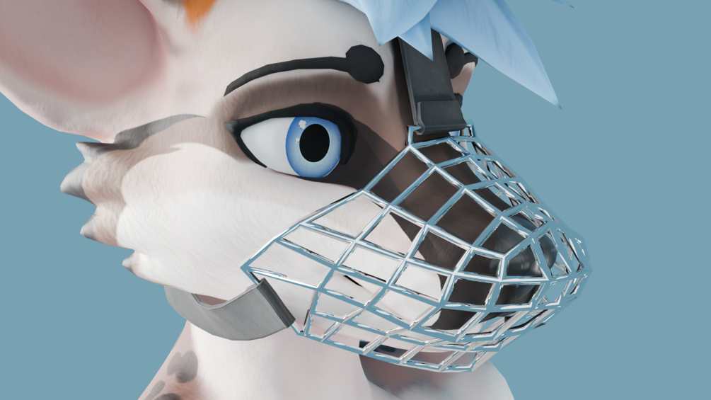 Add an extra edge to your Vivi avatar with this custom-fitted metal cage muzzle – a bold accessory that blends clean design with intense vibes. Designed specifically for the Vivi base, this muzzle combines form and function, wrapping snugly around the snout with a sleek strap system and metallic mesh structure.